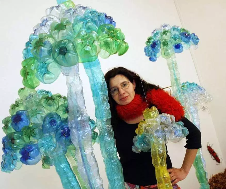 Dit is Veroniks Richertova, zij maakt kunst van plastic soep en zorgt er hiermee dus voor dat het niet in de zee blijft drijven en dus probeert te voorkomen dat het plastic een gveaar zal zorgen voor dieren.
